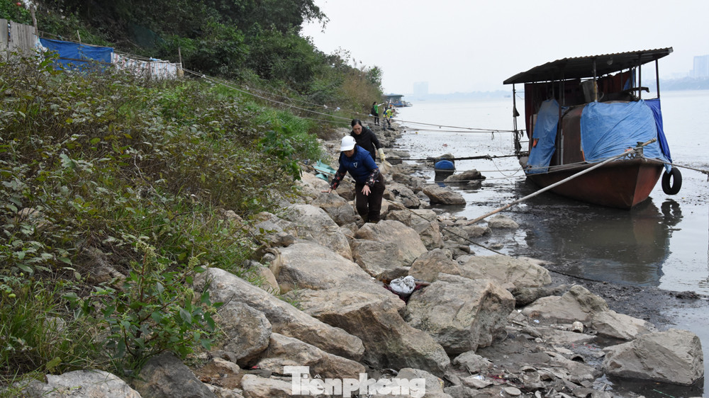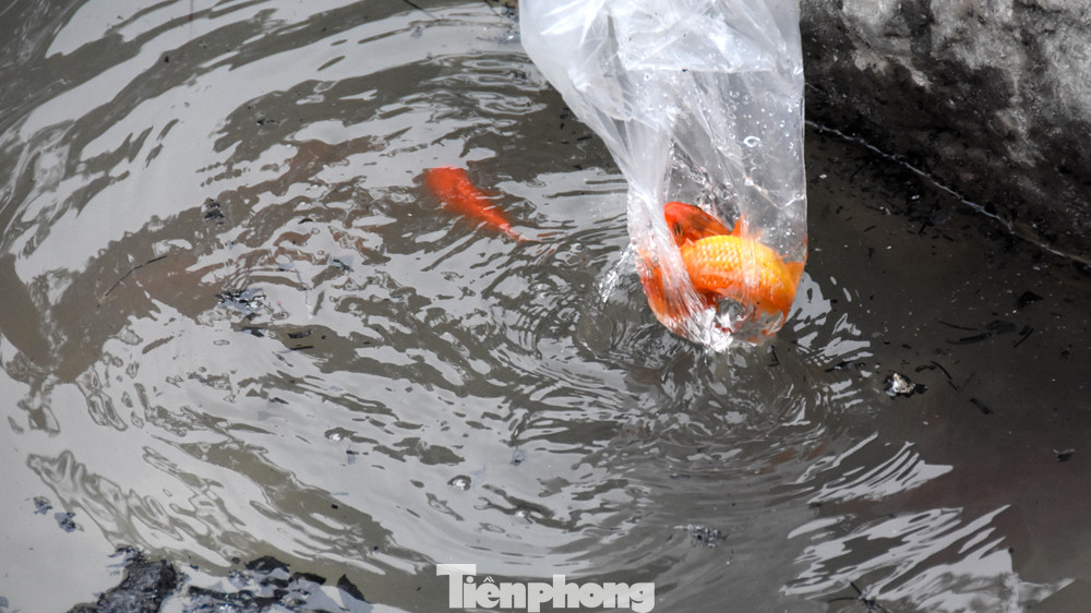 Nhiều người tự mang cá đi thả cách chân cầu Long Biên hàng trăm mét với hy vọng cá thả xuống sông sẽ không bị ngạt do nhiều người ý thức kém đổ rất nhiều tro nhang xuống dòng nước.