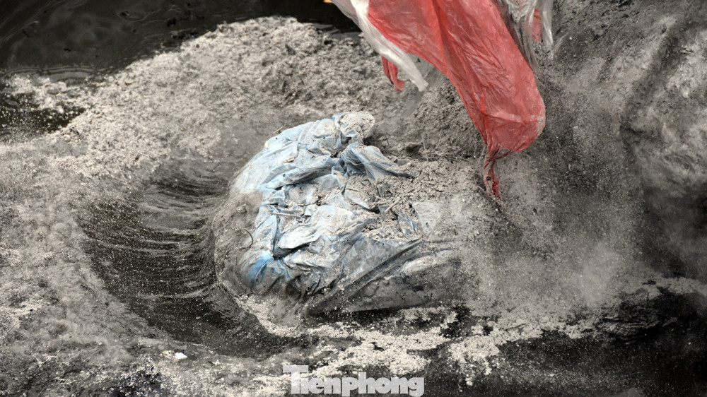 Vất vả ra xa nới mặt nước bị phủ kín bởi tro nhang để thả cá.