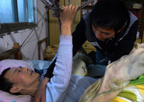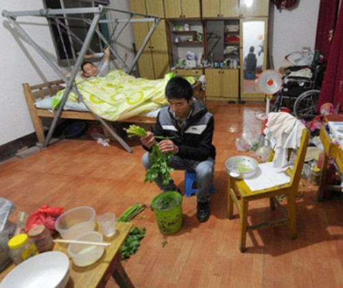 Năm ngoái, một cậu sinh viên khác tên Shijun, 20 tuổi, ở Lục An, tỉnh An Huy, cũng đưa bố bị bệnh bại liệt đến nhà trọ ở cùng mình.