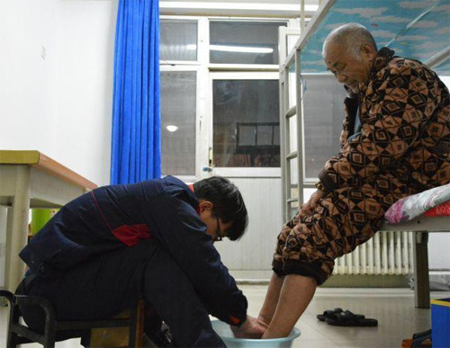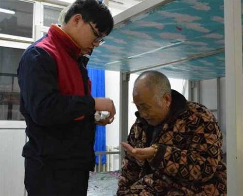 Sợ bố ở nhà không ai chăm sóc, Zhao Delong (Trung Quốc) xin phép nhà trường đưa bố vào ở ký túc xá cùng mình để tiện lo cho ông.