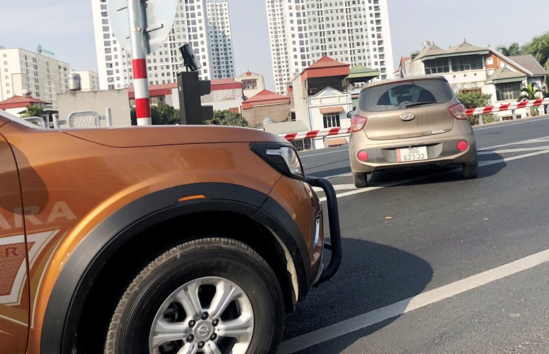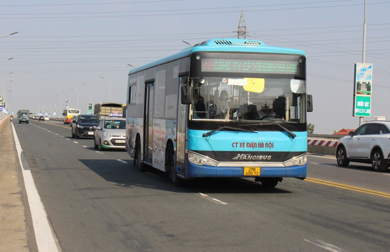 Với cầu Thăng Long, do diện tích chiều rộng mặt cắt ngang nhỏ hơn đường trên cao nên phương tiện qua lại luôn phải nối đuôi nhau di chuyển.