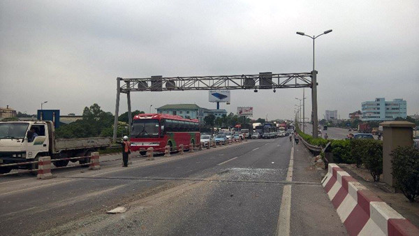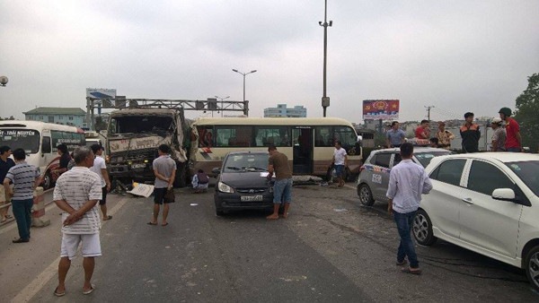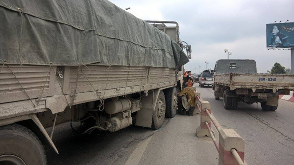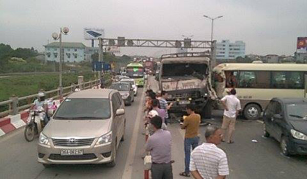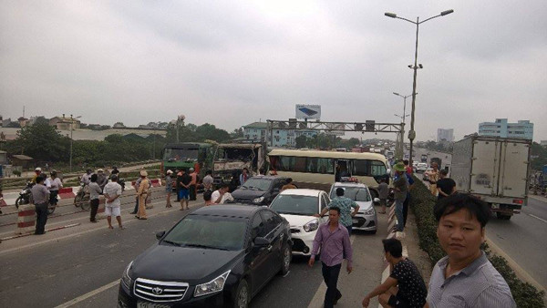 Vụ tại nạn còn khiến tuyến đường nhánh và cả cầu Thanh Trì bị ùn tắc nghiêm trọng.