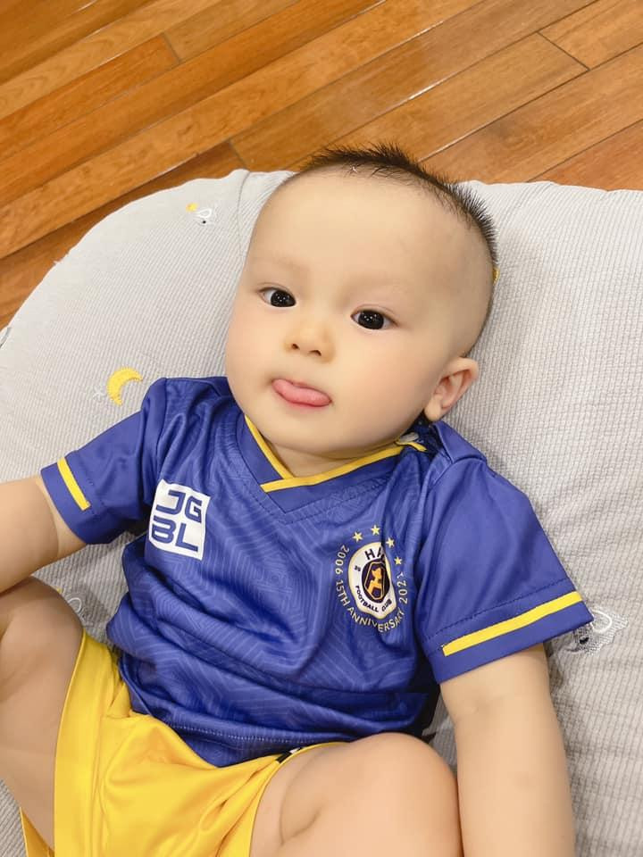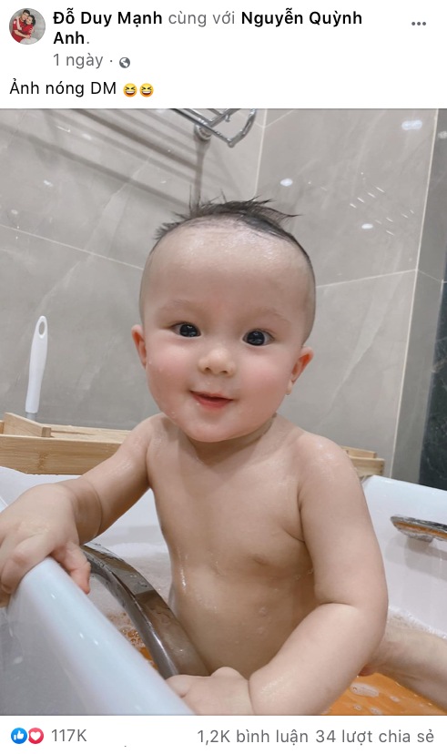 Mới đây trên trang cá nhân của mình, cầu thủ Duy Mạnh đã đăng ảnh bé Ú 9 tháng tuổi. Bức ảnh được chụp khi bé Ú đang trong bồn tắm, nở nụ cười vô cùng đáng yêu.