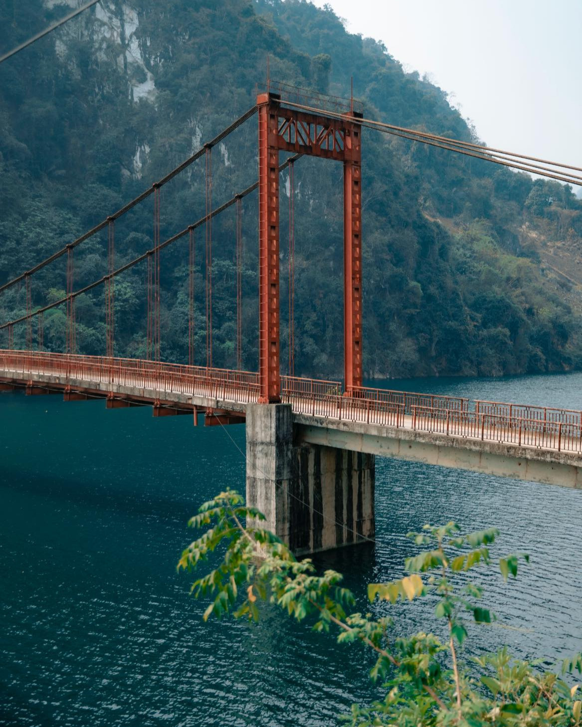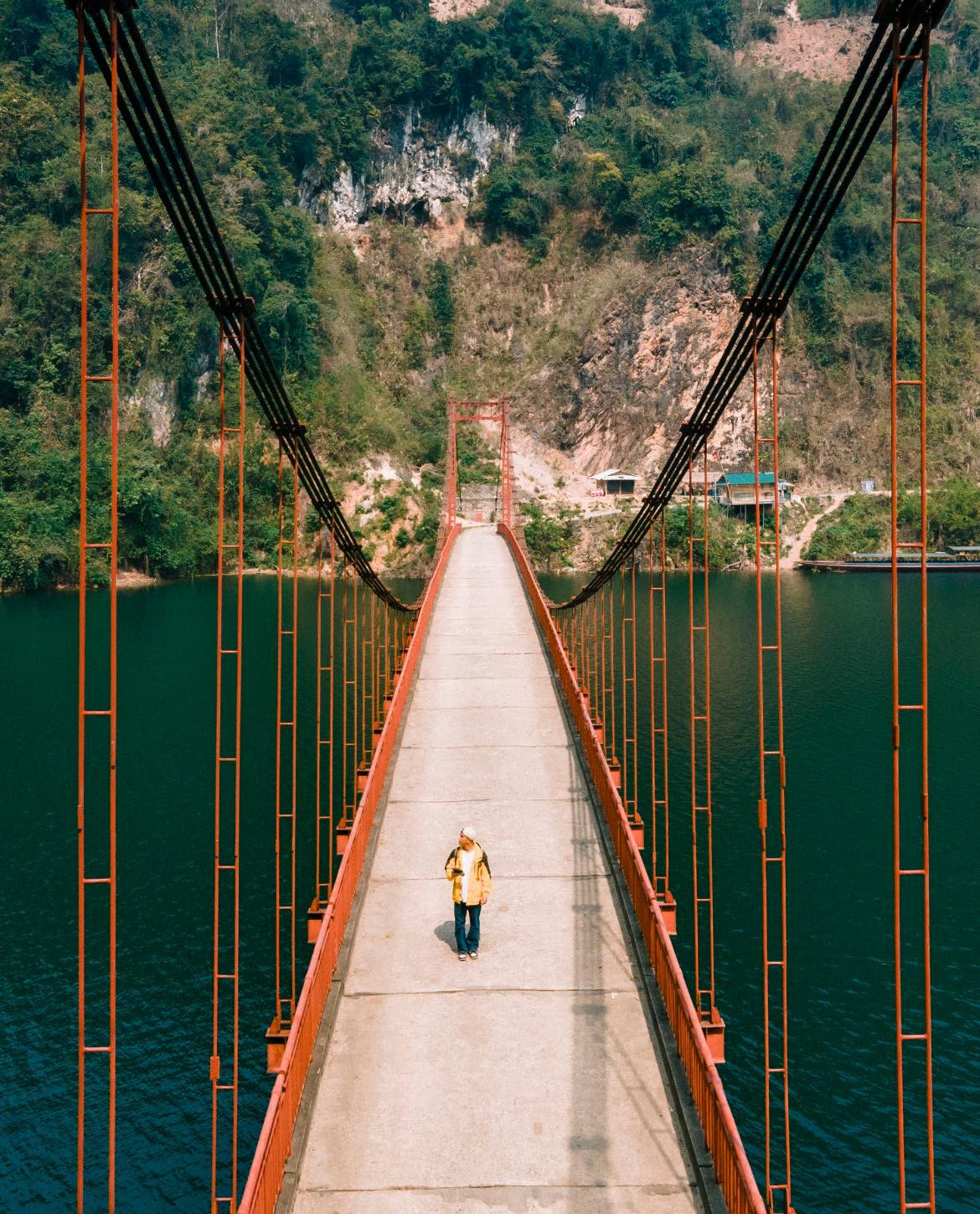 | Travel blogger Bùi Ngọc Công check-in bên cây cầu treo, chiêm ngưỡng cảnh sắc sơn thủy hữu tình |