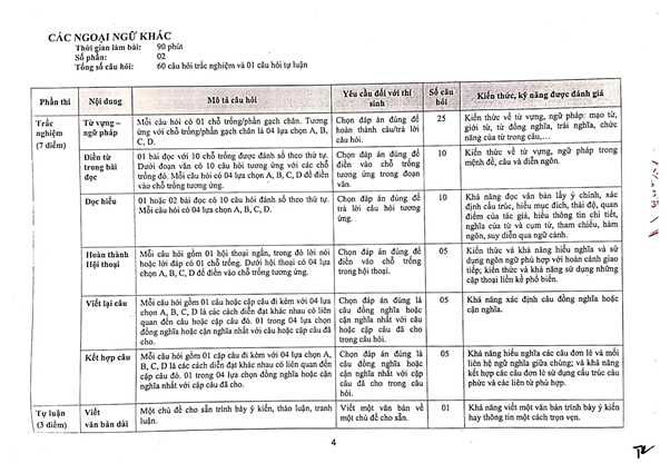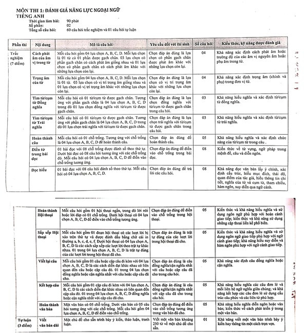 Theo đó, năm 2021, thí sinh thi vào lớp 10 Trường THPT Chuyên ngoại ngữ tham gia bài thi 3 môn. Cụ thể, môn 1 là Đánh giá năng lực ngoại ngữ. Đề thi gồm 60 câu hỏi trắc nghiệm và 1 câu hỏi tự luận. Thí sinh làm bài trong 90 phút.