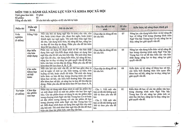 Cuối cùng là Đánh giá năng lực Văn và Khoa học Xã hội. Đề thi gồm 20 câu hỏi trắc nghiệm và 2 câu hỏi tự luận. Thí sinh làm bài trong 55 phút.