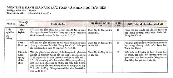 Môn 2 là Đánh giá năng lực Toán và Khoa học tự nhiên. Đề thi gồm 35 câu hỏi trắc nghiệm. Thí sinh làm bài trong 55 phút.