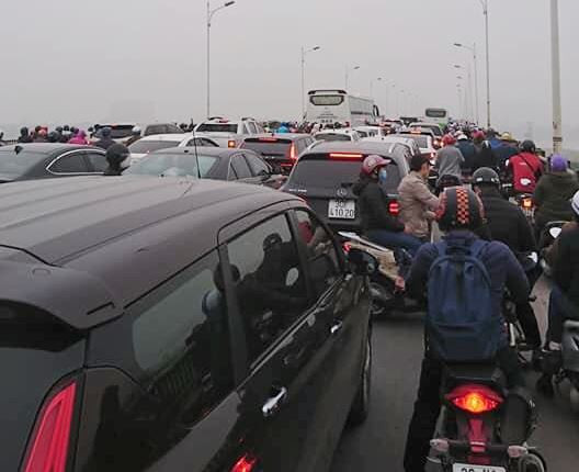Phương tiện ùn tắc kéo dài trên cầu Vĩnh Tuy.