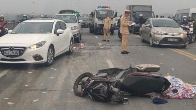 Ghi nhận của phóng viên tại hiện trường cho thấy, khu vực giữa cầu hướng quận Long Biên vào trung tâm Thủ đô Hà Nội xảy ra tai nạn khiến một người đi xe máy tử vong.