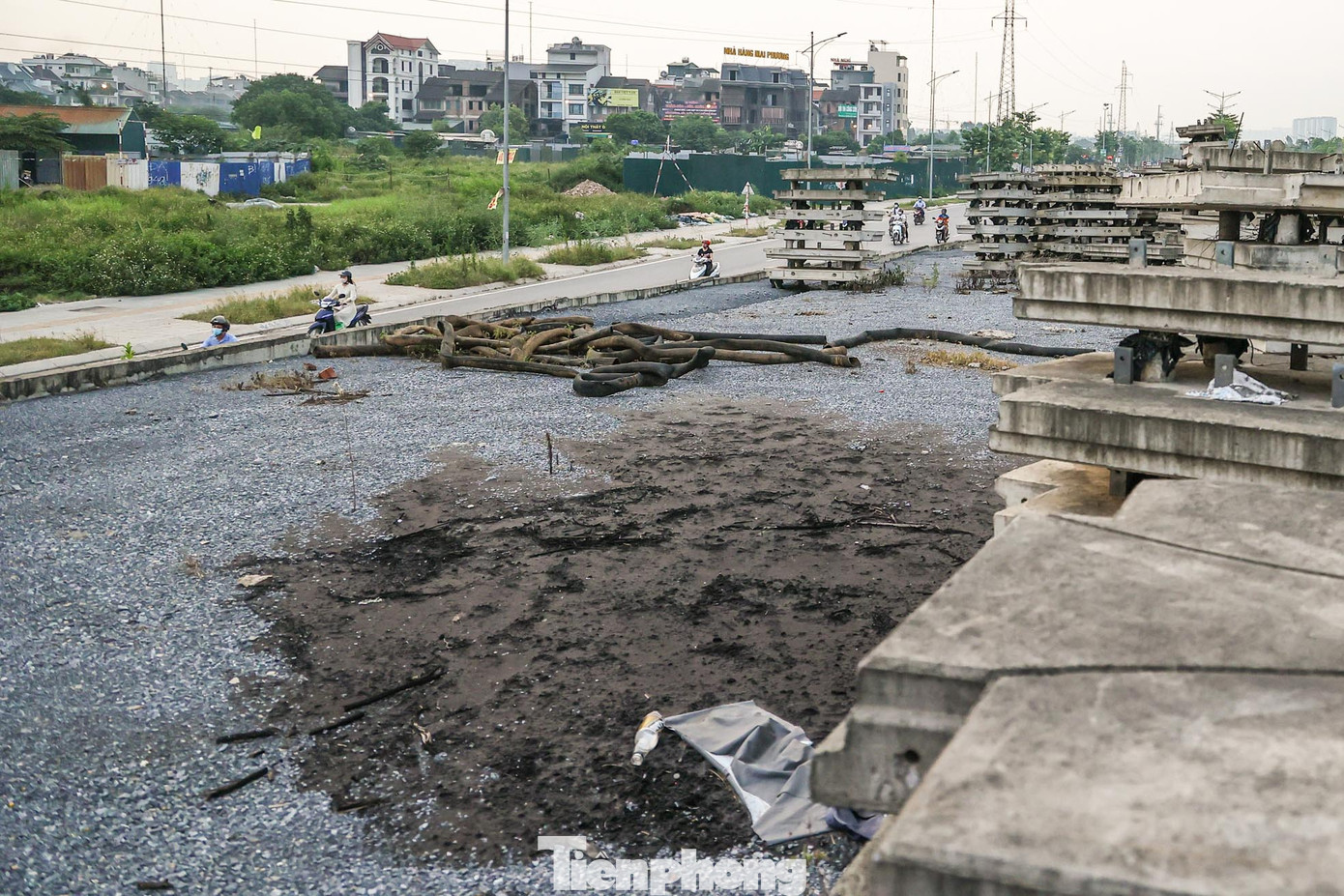 | Cầu vượt thi công bỏ dở thành nơi tập kết vật liệu xây dựng, rác thải... ngay trên đại lộ nghìn tỷ. |