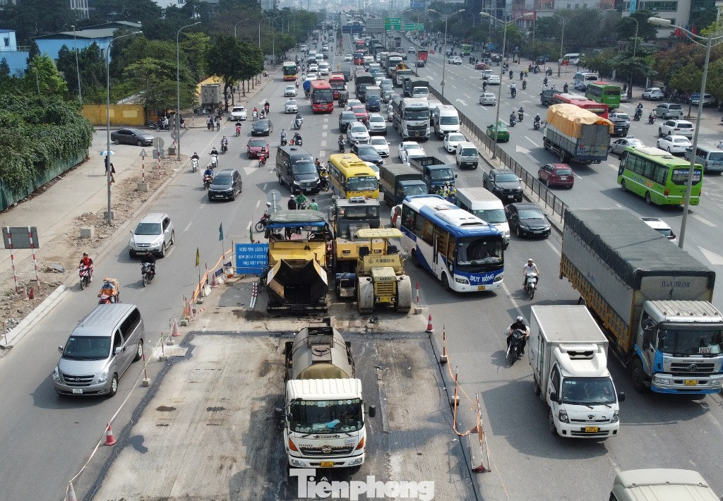 | Tuy nhiên do lưu lượng xe, đặc biệt là xe tải, xe khách ở đường trên cao lớn nên nhiều thời điểm việc dựng rào để thảm dốc lên xuống đã gây ùn tắc cho đường Phạm Hùng và Vành đai 3 trên cao. |