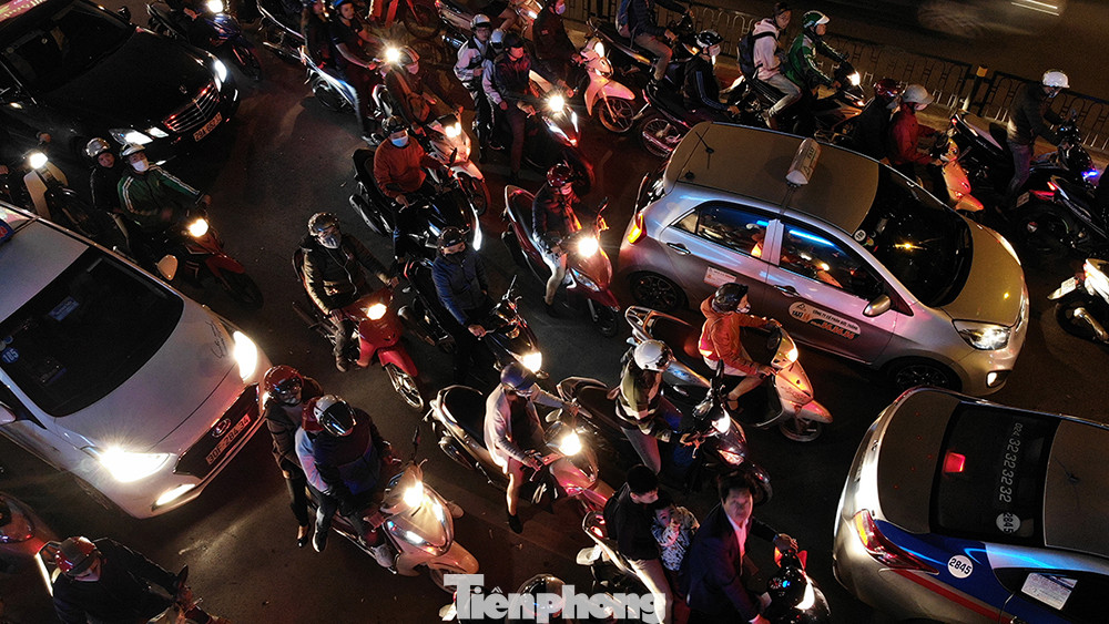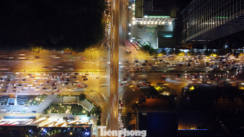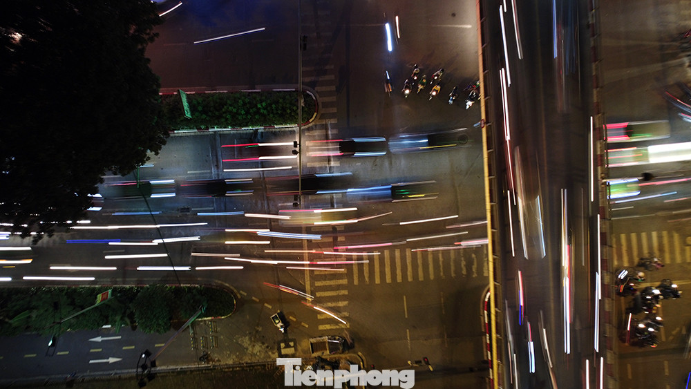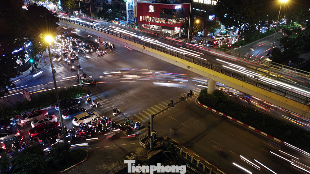 Cảnh tượng xe cô đi lại thoải mái chỉ có thể diễn ra vào đêm muộn ở những ngã tư của Hà Nội.