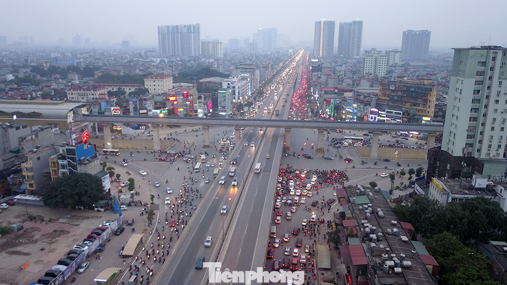 Nút giao hiện đại với 3 tầng (đường vành đai 3 trên cao, đường Phạm Hùng và đường hầm đầu đại lộ Thăng Long).