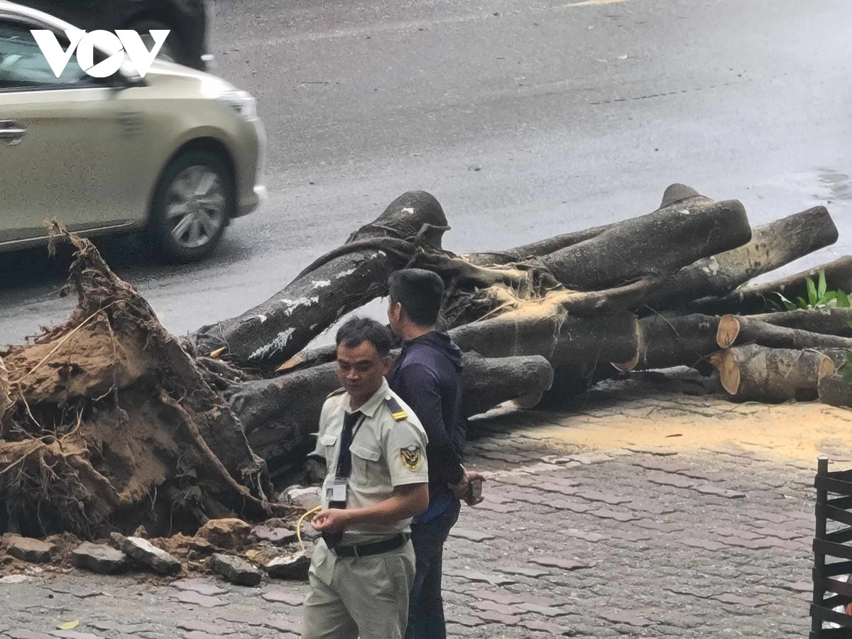 Theo Công ty Công viên cây xanh Hà Nội, cây đa có đường kính hơn 50cm, tán rộng, khi đổ xuống chắn ngang gần hết lòng đường Hoàng Minh Giám khiến giao thông ùn tắc.