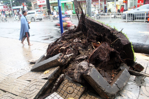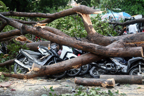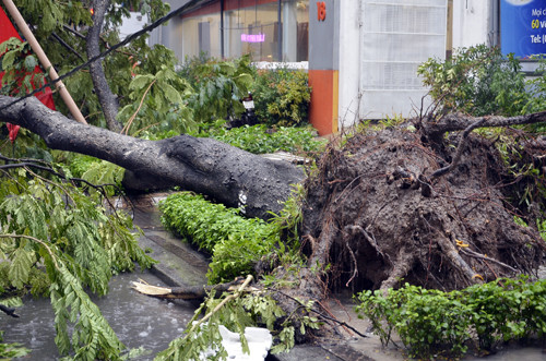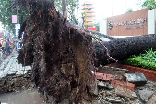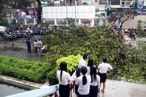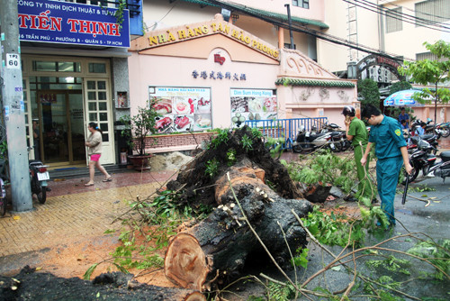 Cây cổ thụ đổ la liệt ở Sài Gòn