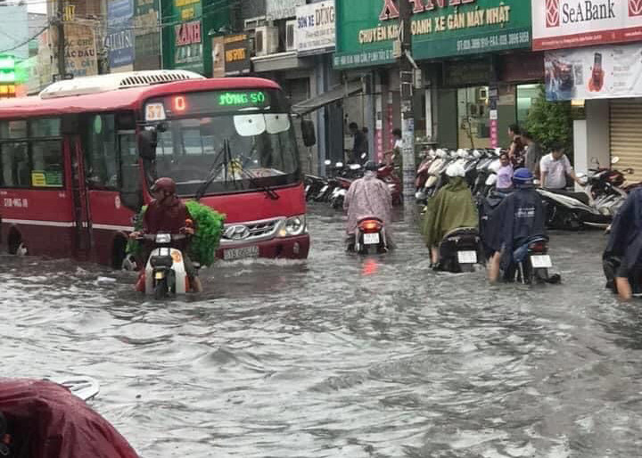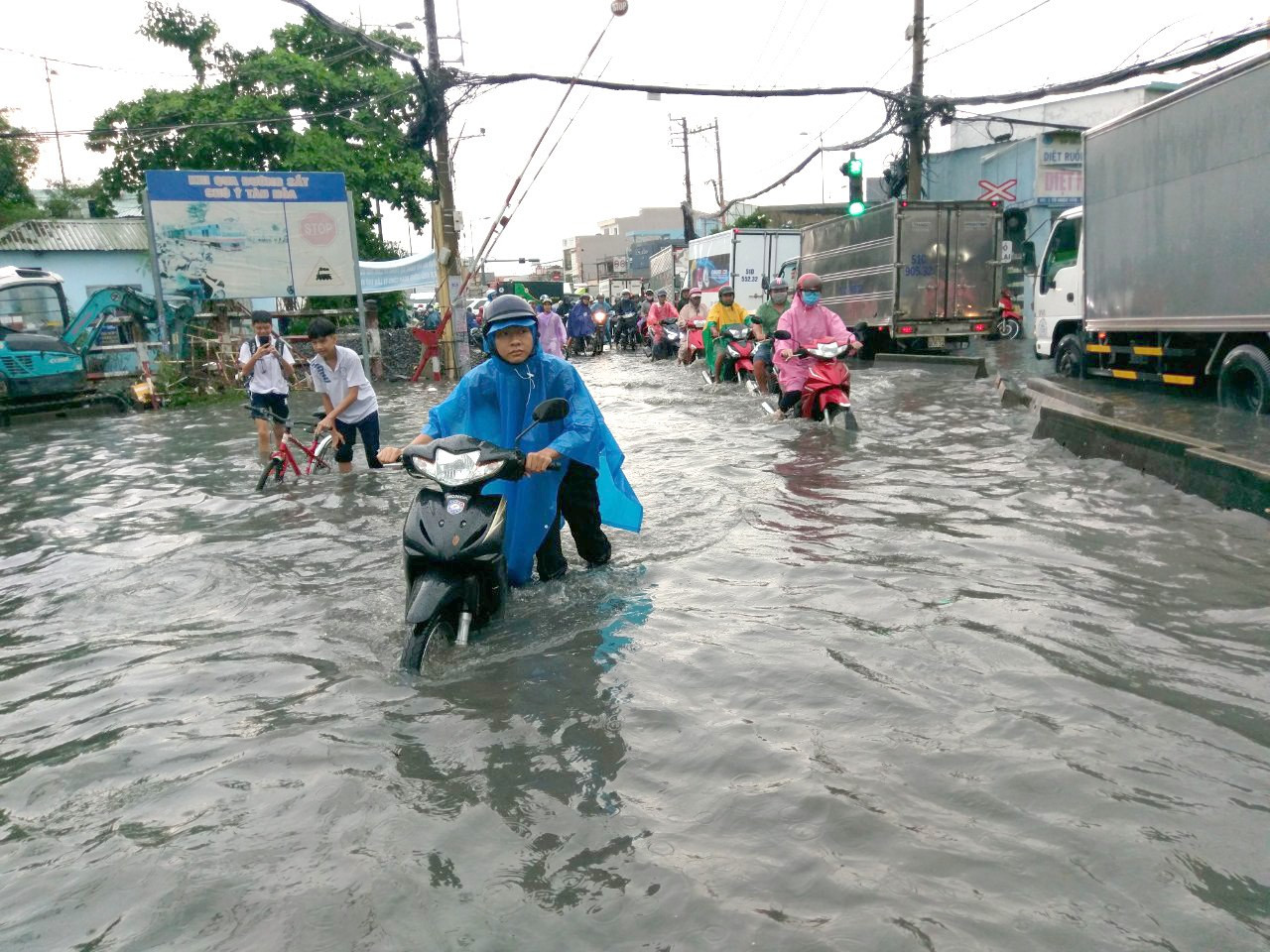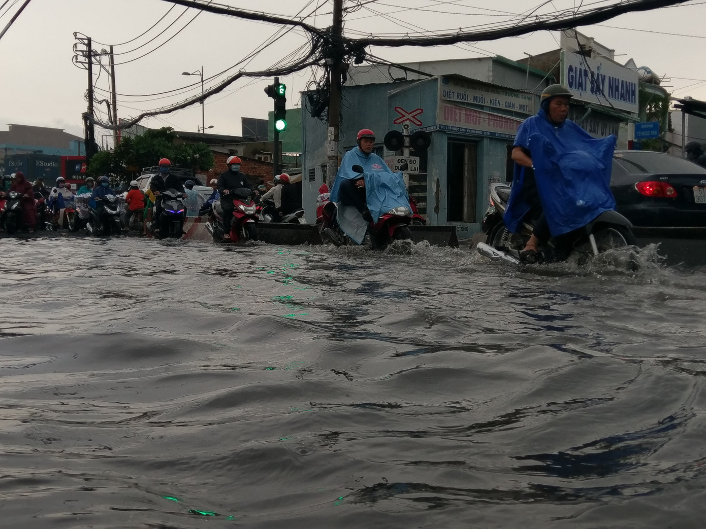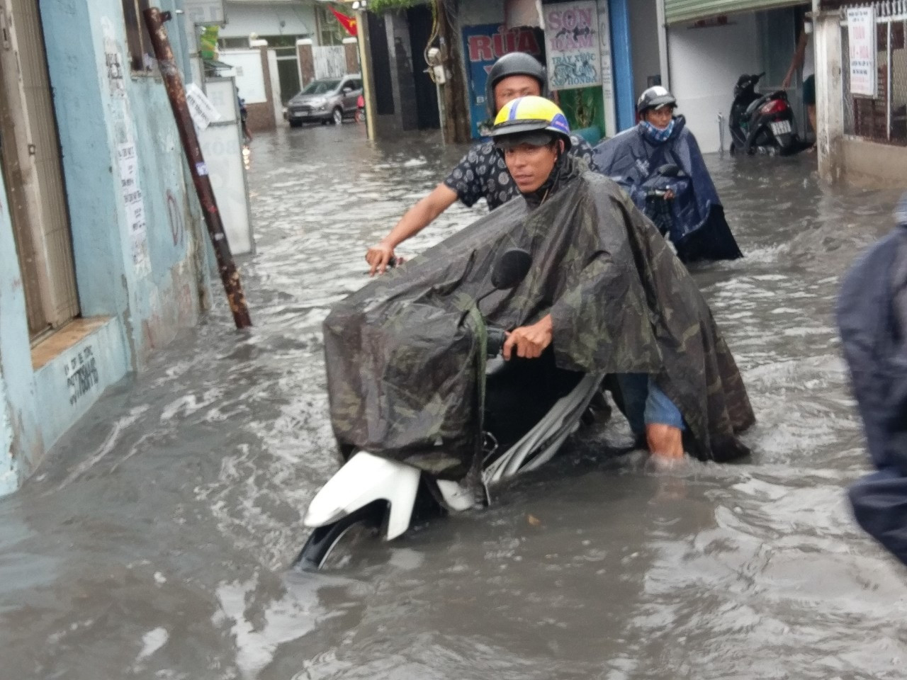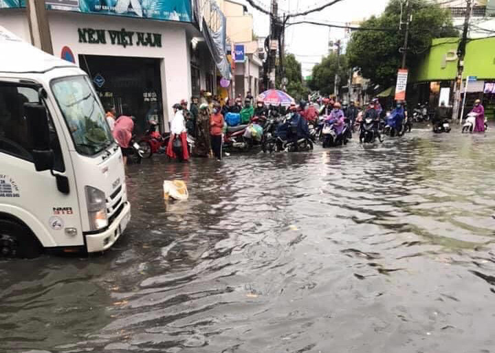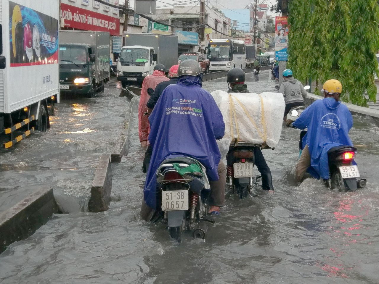 Khu vực các quận huyện như Bình Thạnh, Gò Vấp, Bình Tân..., mưa nặng hạt cũng làm nhiều đoạn ngập, giao thông gặp nhiều khó khăn.