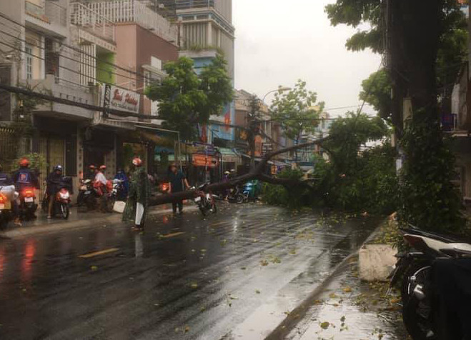 Ghi nhận vào chiều 30/5, cơn mưa lớn kéo dài hơn 1 giờ đồng hồ kèm theo gió giật mạnh trên diện rộng ở TPHCM.