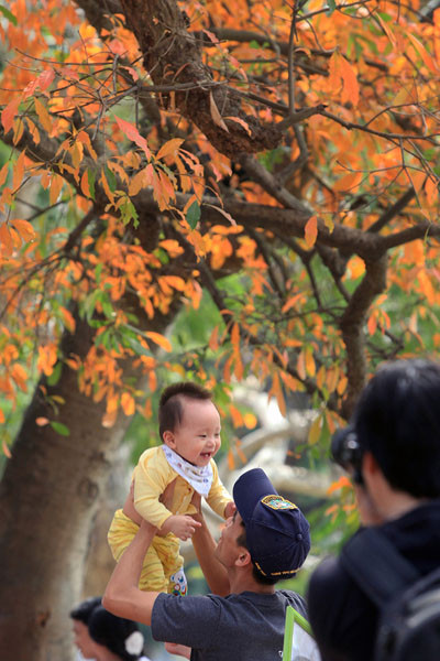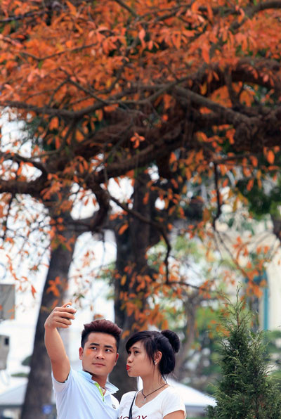 Đây cũng là dịp để các bạn trẻ cùng nhau 'pose' hình bên lộc vừng Hồ Gươm, hay có thể nhặtt vài chiếc là về ép vào giũa quyển sách làm kỷ niệm.