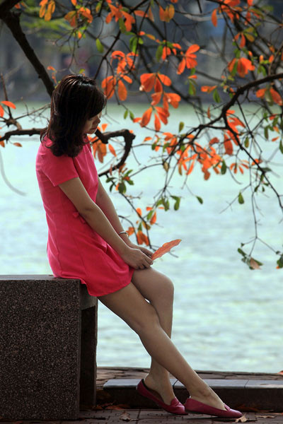 Hồ Gươm thêm lãng mạn trong mùa lộc vừng lá vàng.