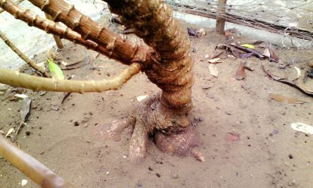 Cây sắn đã có rất nhiều củ, nhiều củ to bằng  bắp chân trồi lên khỏi mặt đất
