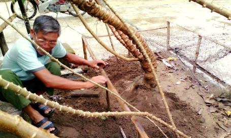 Gia đình ông Huýnh phải làm giàn đỡ cho cây sắn