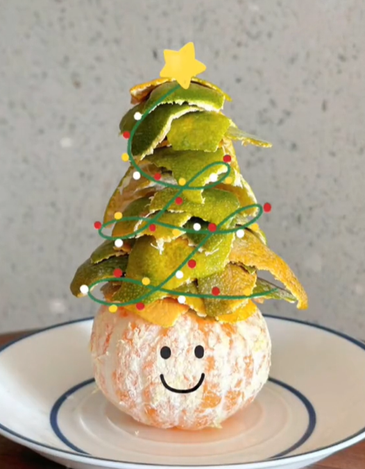 Ngoài 2 loại hình "hot hit" trên, cư dân mạng cũng sáng tạo ra nhiều cách làm cây thông thú vị từ đồ ăn. Nổi bật phải kể tới cây thông từ quả quýt. Trông khá "dễ cưng" nhưng cây thông này có "tuổi thọ" chỉ trong vài giờ vì vỏ quýt sẽ bị khô và thân cây sẽ sớm bị "bỏ bụng" vì hấp dẫn.