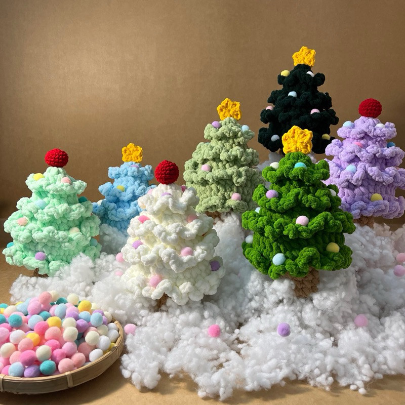 Chơi đồ thủ công từ kẽm nhung, đan/ móc len là xu hướng thịnh hành của giới trẻ năm nay. Mùa Giáng sinh tới, đồ trang trí từ hai vật liệu này cũng lên ngôi, nổi bật là cây thông trang trí cỡ nhỏ. Không khó để tìm mua cây thông kẽm nhung hay móc len trên các trang mạng xã hội hoặc sàn thương mại điện tử. Tùy vào kích cỡ, độ cầu kỳ mà giá mỗi cây sẽ từ 30K đồng trở lên.