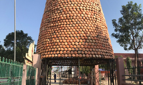 Đã hơn 1 tháng nay với 20 người thợ nhưng cây thông Noel bằng nồi đất nung vẫn chưa được hoàn thiện. Ảnh: Cảnh Thắng