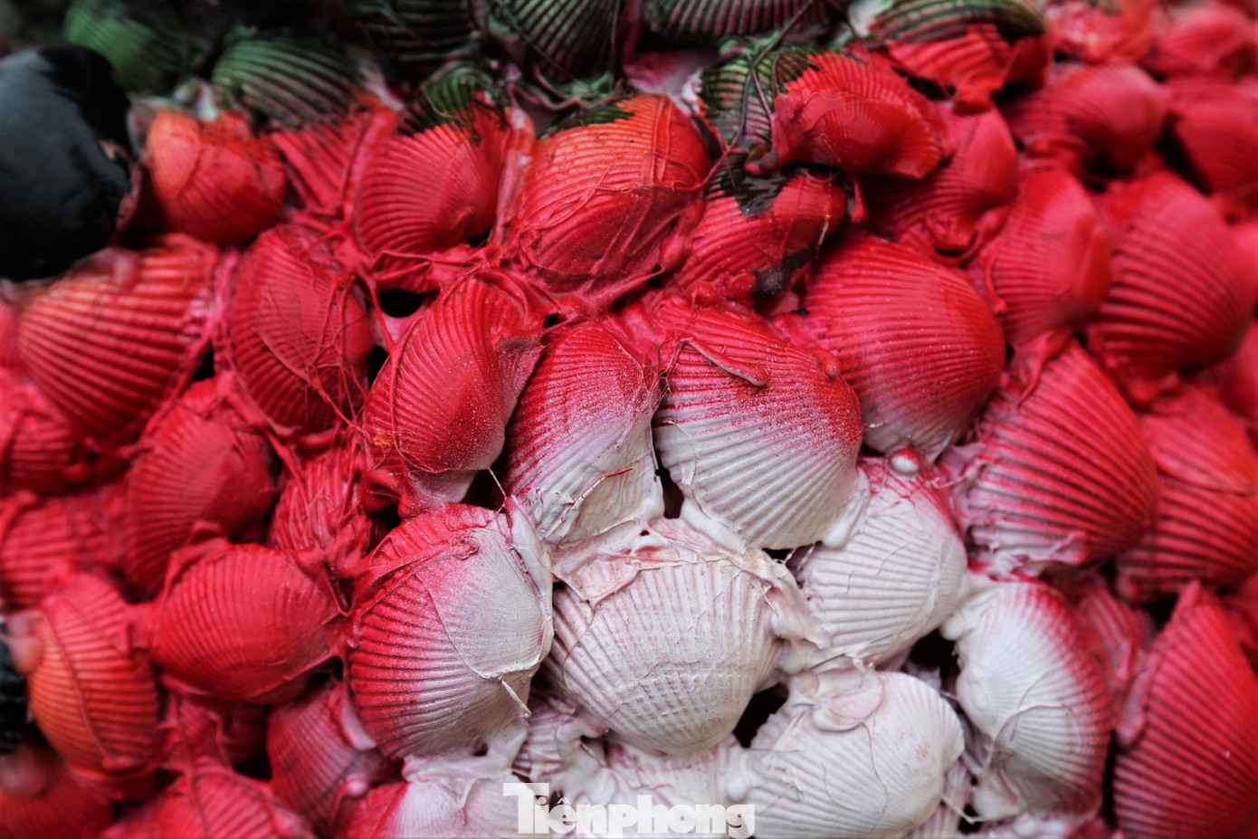 | Vỏ sò kết dính với nhau bằng keo nến, sau đó ghép vào tấm lưới đánh cá cũ. Toàn bộ quá trình được hàng chục người làm trong 1 tháng. |