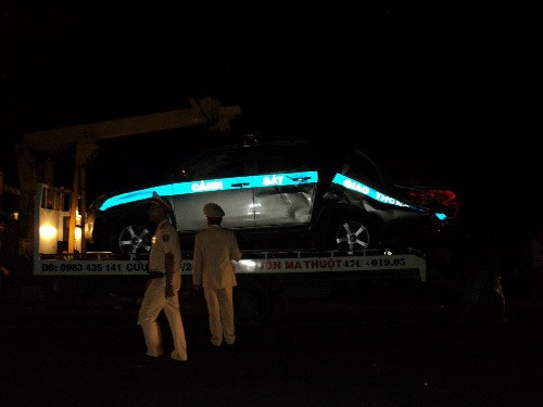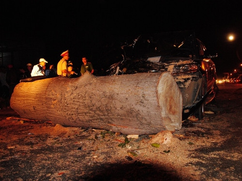 Cùng lúc đó có 1 xe ô tô của CSGT tỉnh Đắk Lắk đi qua, cũng bị 1 nhánh lớn của cây va đập vào khiến phần đuôi xe bẹp dúm, hư hỏng nặng. Rất may những người ngồi trên xe an toàn.