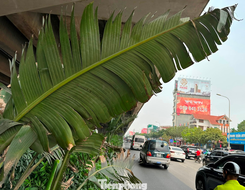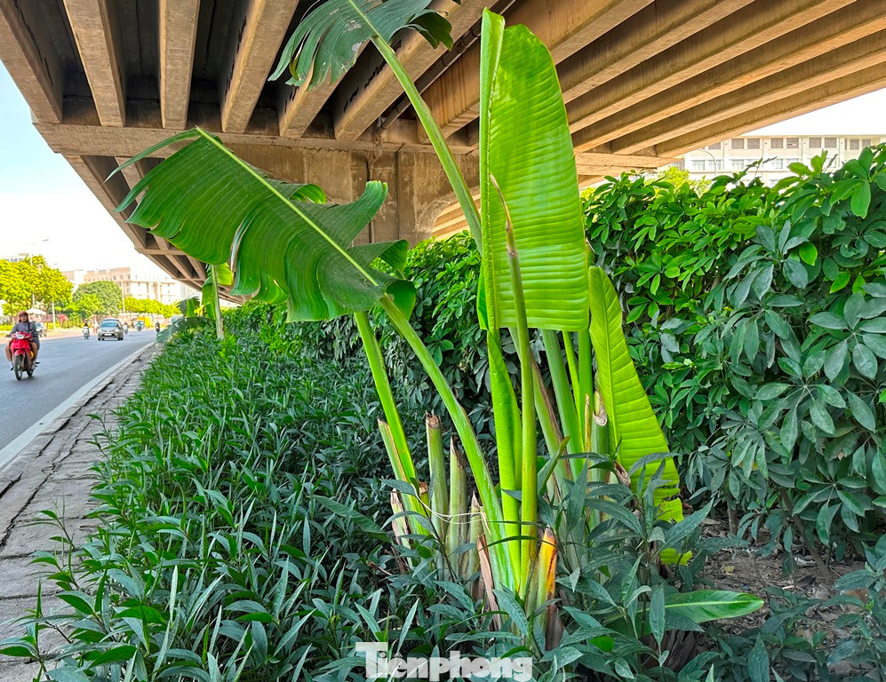 | Một số cây chuối cảnh phát triển được nhưng khi ngọn vươn lên trên cao thì đụng dầm bê tông gần đường trên cao vành đai 3. |