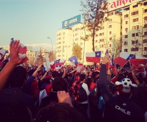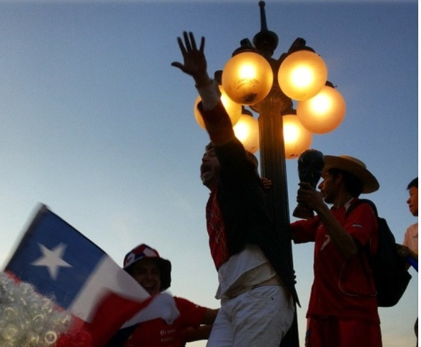 CĐV đổ ra đường Santiago chỉ chưa đầy 1 giờ khi hai bàn thắng của Aranguiz, Vargas giúp Chile đánh bại Tây Ban Nha 2-0.