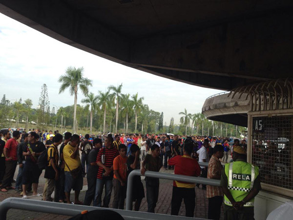 Dù đông, nhưng các CĐV Malaysia xếp hàng rất trật tự, không thấy có cảnh chen lấn, xô đẩy nhau. Nhiều người mang theo cả trẻ em tới sân, chụp ảnh kỷ niệm.