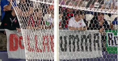 Trong trận đấu với U21 Đan Mạch, thủ thành 18 tuổi bị chế tên là "Dollarumma" bởi một tấm băng rôn lớn phía sau khung thành.