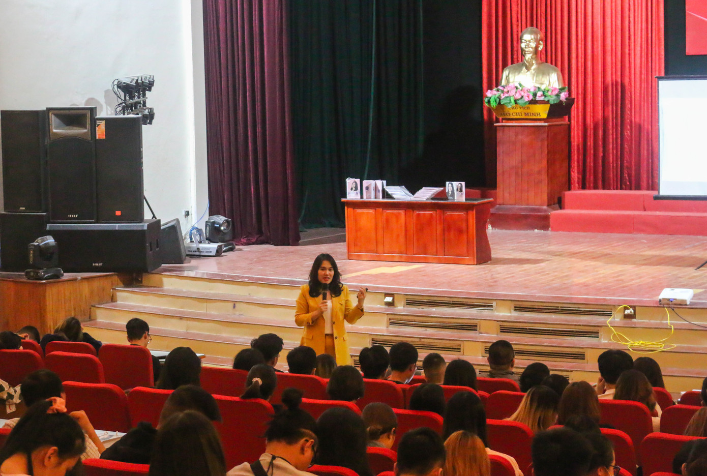 CEO Nguyễn Mến đã chia sẻ câu chuyện khởi nghiệp thành công của chính mình, đồng thời cũng cung cấp cho các sinh viên nhiều thông tin, kiến thức về thị trường lao động hiện nay, nhu cầu của thị trường đối với các ngành nghề mà sinh viên đang theo học. Diễn giả mong muốn từ buổi nói chuyện này sinh viên sẽ biết định vị bản thân, xác định mục tiêu để lựa chọn công việc phù hợp…