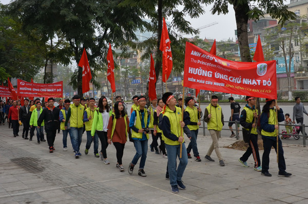 “Bọn em đều muốn được hiến máu! Xin mãi nhưng bị loại do chưa đủ tuổi ạ! Mà bọn em trông còn nặng cân hơn khối anh chị sinh viên…” Đó là tâm sự rất… “bức xúc” một cách đáng yêu của Nhật Quang và Trà My, hai bạn đang cầm biểu ngữ dẫn đầu đoàn diễu hành của Câu lạc bộ Tình nguyện Thế giới Kết nối thuộc Anh ngữ iStar – The Princeton Review.
