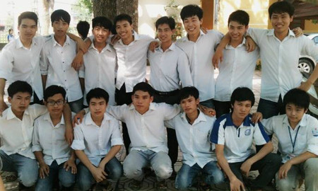 Nguyễn Văn Tuân (ngồi thứ 2 từ bên trái sang) chụp chung với các bạn cùng lớp. (Ảnh: NVCC)