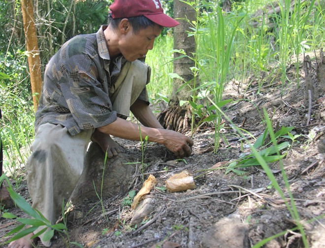 Ông Tri cho biết: "Vào sáng nay, khi tôi và anh Lang chuẩn bị đưa cây keo giống đi trồng ở đám rẫy gần nhà, thì cha đòi đi theo. Cha nói lâu rồi không đi rừng nên cái tay, chân mỏi lắm. Qua quan sát, thì dù rất lạ với cách trồng loại cây này, thế nhưng sau khi được hướng dẫn, 2 cha con người rừng trồng khá thành thạo".