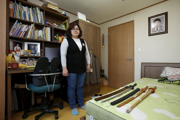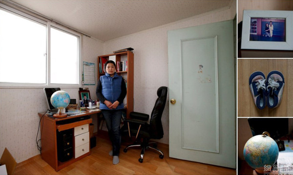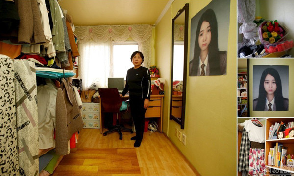 Mẹ và em trai của nạn nhân Jung Hwi-beom trong căn phòng của nam sinh xấu số. Người mẹ bày tỏ: "Trước khi chuyện xảy ra, gia đình chúng tôi thường trò chuyện với nhau rất vui. Bây giờ chúng tôi nói cũng không dám nói, sợ làm tổn thương nhau. Tôi khao khát được nhìn thấy Hwi-beom, được ôm con một lần nữa".