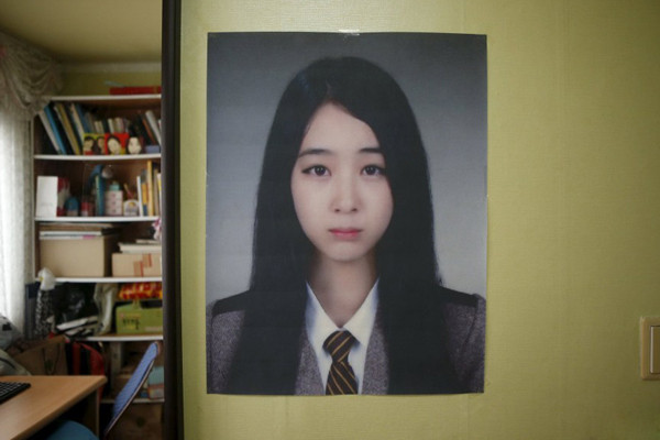 Di ảnh của nữ sinh Moon Ji-sung treo trong phòng. Ước mơ của Ji-sung là trở thành tiếp viên hàng không.