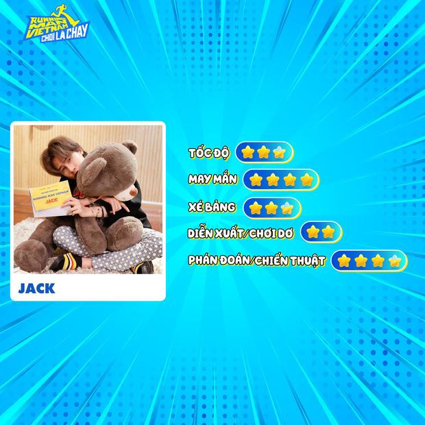 "Cậu út" Jack vẫn được fan ưu ái đánh giá cao về độ may mắn, nhưng về độ "chơi dơ" thì thấp hơn hẳn so với các thành viên còn lại, lý do là có thể sẽ ảnh hưởng đến hình tượng "chàng trai ngoan hiền ai gặp cũng cưng" mà Jack xây dựng lâu nay. Nhưng Jack vẫn là một trong những thành viên khó đoán của mùa 2, biết đâu bất ngờ!