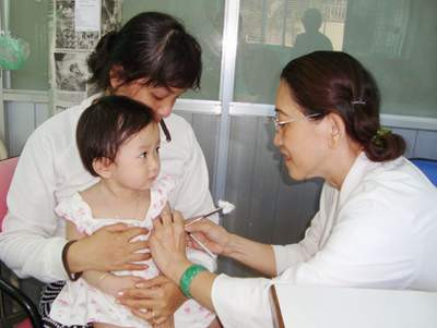 Tiêm vaccin phòng viêm não Nhật Bản cho trẻ tại TTYTDP quận Phú Nhuận (TP.HCM).