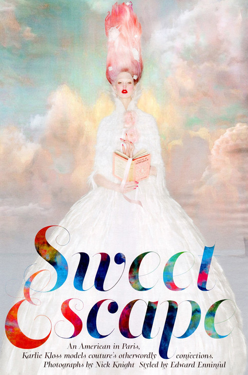 TPO – Siêu mẫu Karlie Kloss xuất hiện ấn tượng trong bộ ảnh ngọt ngào đến không tưởng. Dưới ống kính của nhiếp ảnh gia Nick Knight, chân dài người Mỹ chìm đắm trong xứ sở thần tiên trên tạp chí W số tháng 10.