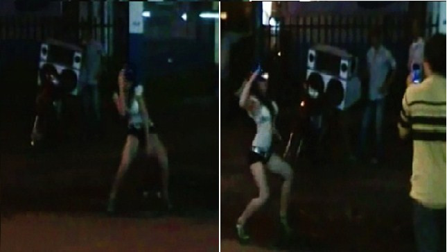 Tưởng rằng cô gái sẽ bỏ ngoài tai những lời khiêu khích của cánh đàn ông, ai ngờ nữ “vũ công” này lập tức “xuất thần”, cởi bỏ áo khoác bên ngoài, trong trang phục nhìn xuyên thấu nội y, cô gái tiến ra giữa đường, nhảy “quằn quại” trong vũ điệu khiêu dâm, đầu tóc rũ rượi, với những động tác chỉ có trong quán bar, vũ trường hoặc ở trong “phòng the”.