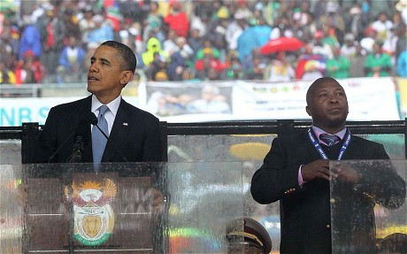 Tang lễ cựu Tổng thống Nam Phi Nelson Mandela được phát sóng trên toàn thế giới với hàng triệu người xem. Trong khi các lãnh đạo thế giới phát biểu trên sân vận động FNB ở Johannesburg, người đàn ông này mặc vest đen có hàng loạt các cử chỉ vô nghĩa.