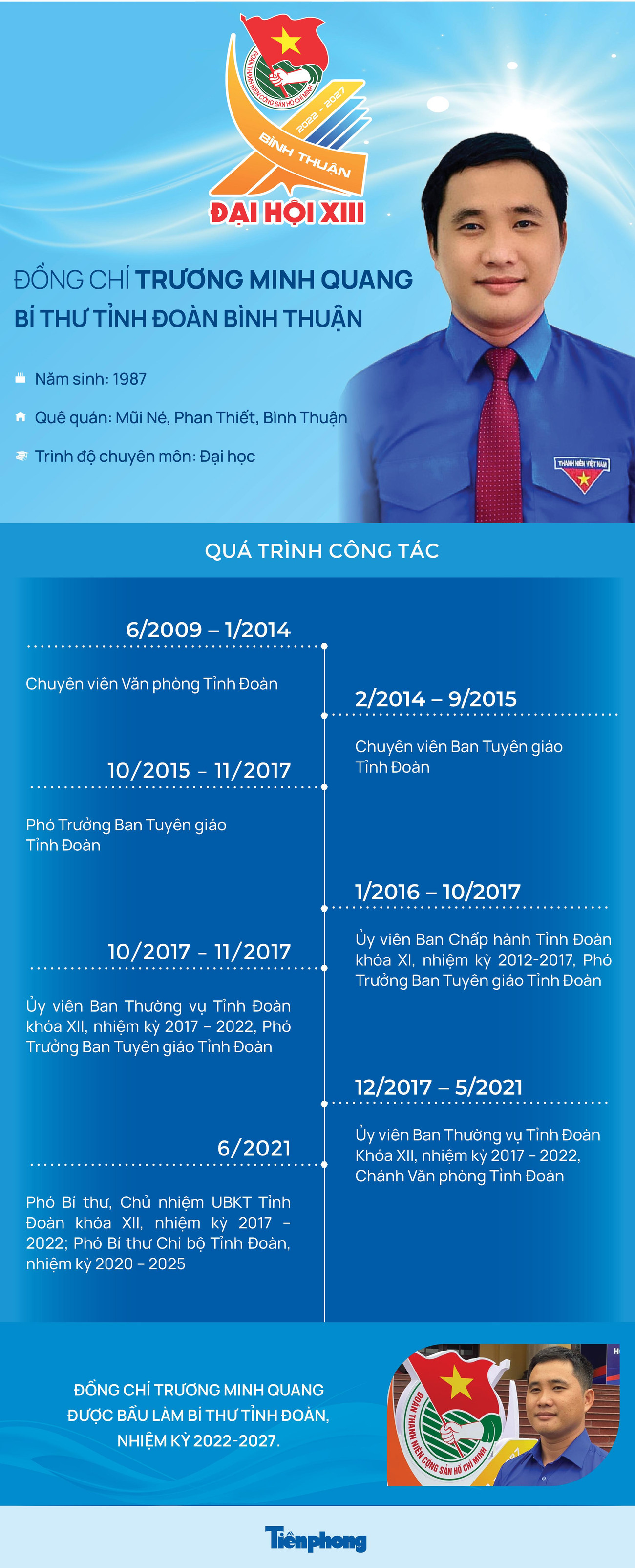 TPO - Anh Trương Minh Quang, sinh năm 1987, được bầu làm Bí thư Tỉnh Đoàn Bình Thuận khóa XIII, nhiệm kỳ 2022-2027.