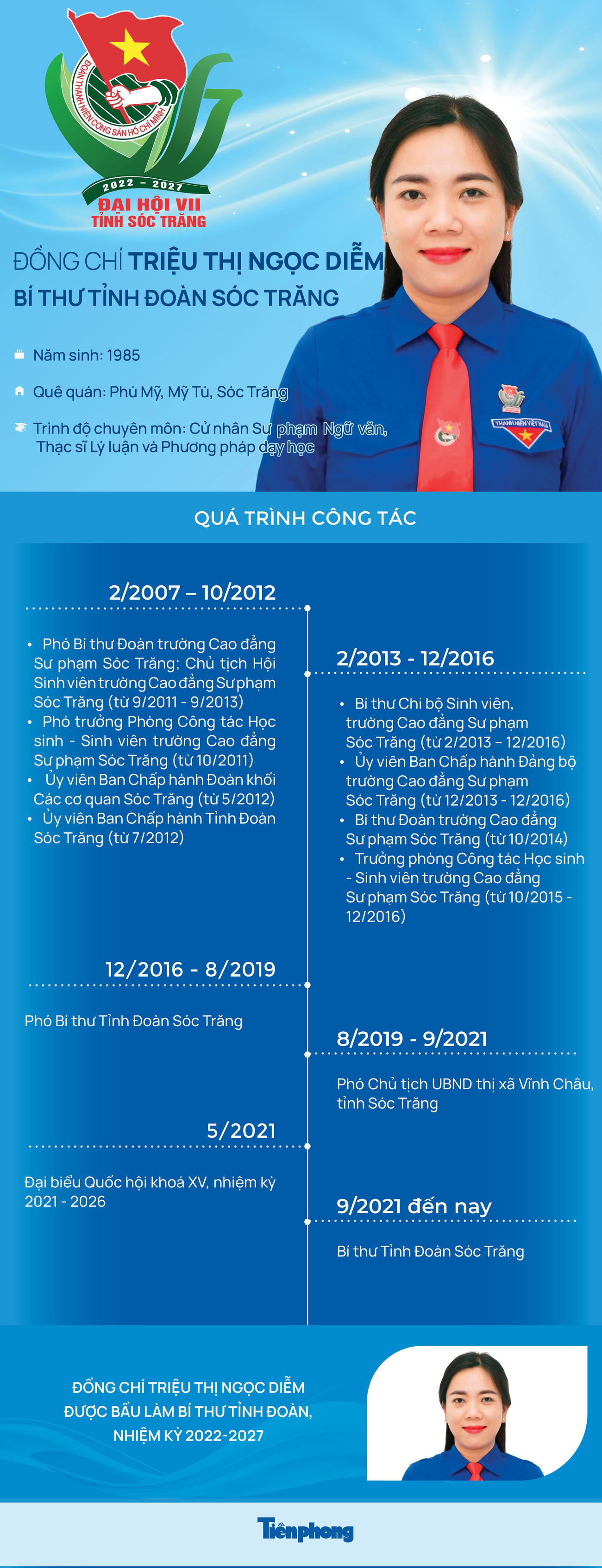 TPO - Chị Triệu Thị Ngọc Diễm -sinh năm 1985, được bầu làm Bí thư Tỉnh Đoàn Sóc Trăng nhiệm kỳ 2022 - 2027.