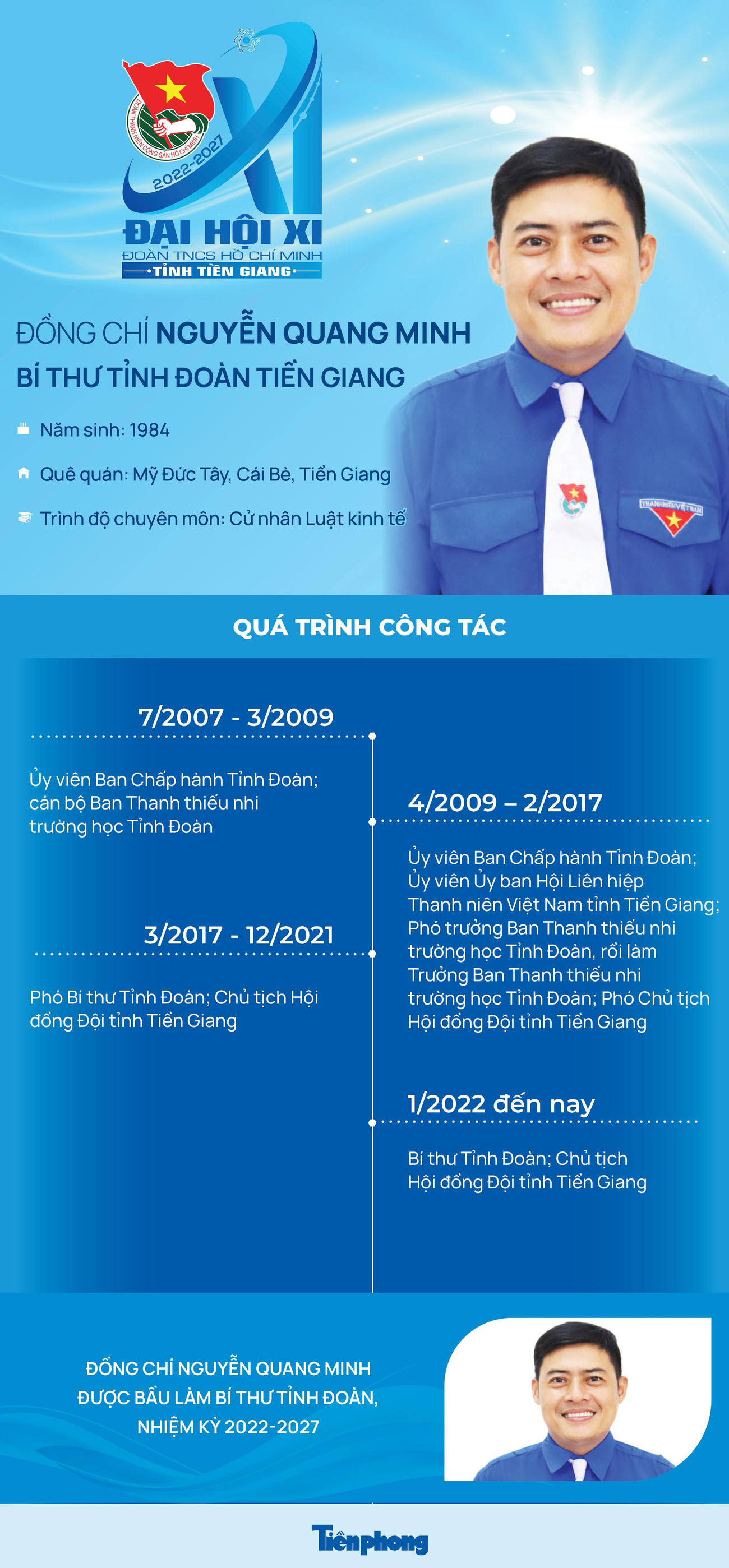 TPO - Anh Nguyễn Quang Minh, Bí thư Tỉnh Đoàn Tiền Giang khóa X, nhiệm kỳ 2017 - 2022, được tín nhiệm bầu làm Bí thư Tỉnh Đoàn khóa XI, nhiệm kỳ 2022 – 2027.