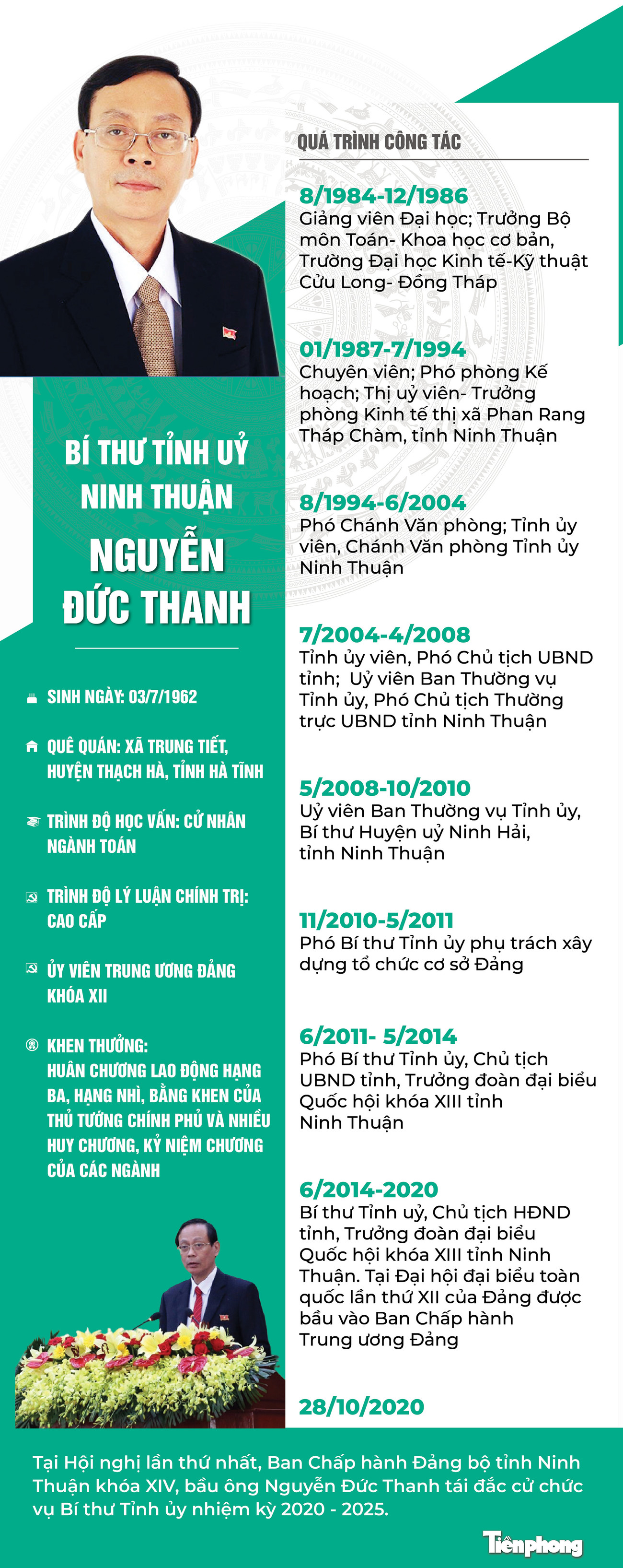 TPO - Ông Nguyễn Đức Thanh được tiếp tục bầu làm Bí thư Tỉnh ủy nhiệm kỳ 2020 - 2025 tại Hội nghị lần thứ nhất Ban Chấp hành Đảng bộ tỉnh Ninh Thuận khóa XIV.
