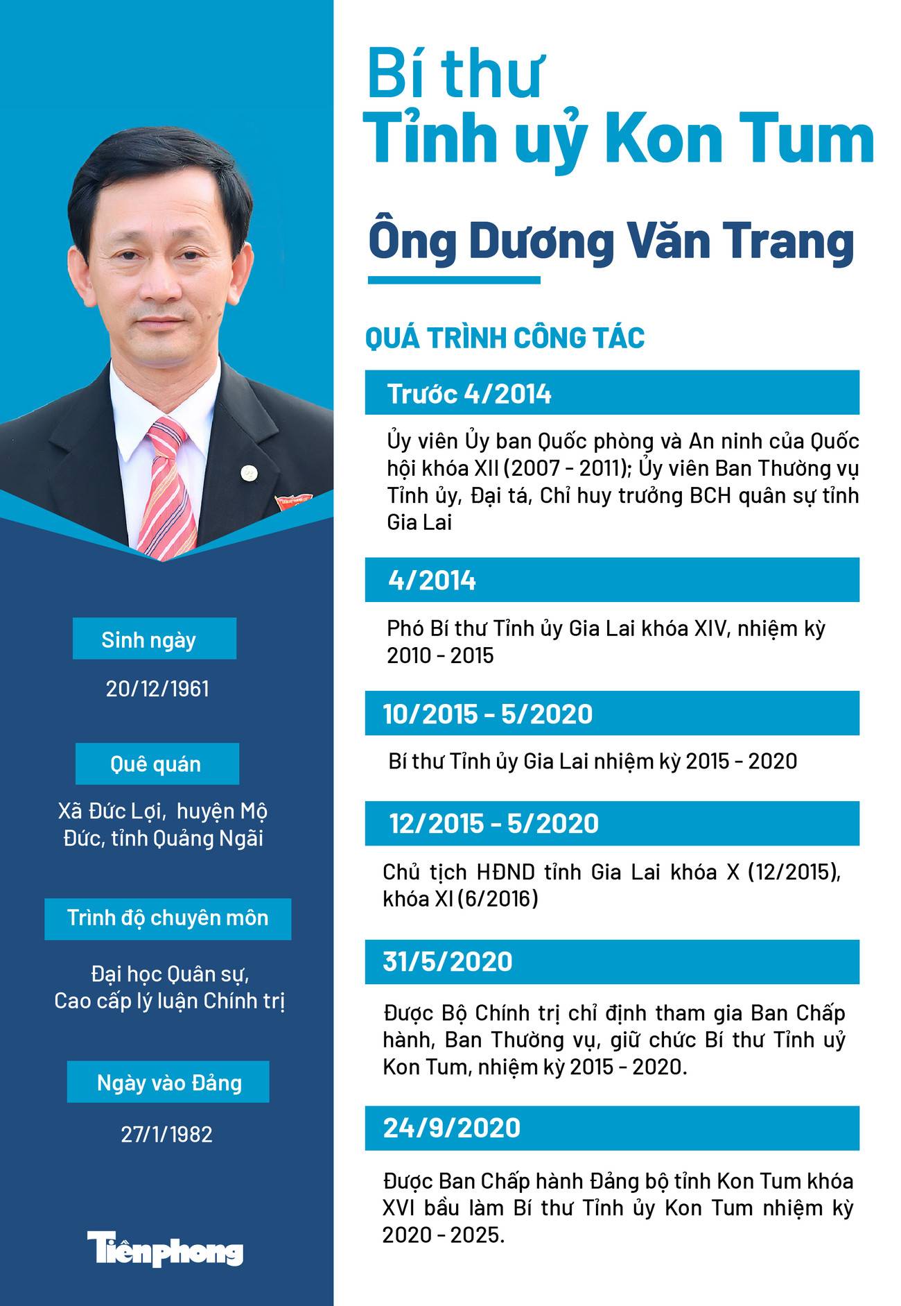 TPO - Tại Hội nghị lần thứ nhất, Ban Chấp hành Đảng bộ tỉnh Kon Tum khóa XVI, đã bầu ông Dương Văn Trang, Bí thư Tỉnh ủy Kon Tum nhiệm kỳ 2015-2020, tiếp tục giữ chức Bí thư Tỉnh ủy nhiệm kỳ 2020-2025.